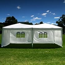 500 denier heavy duty professional polyester top is UV protected. Lightweight rust resistant powder coated steel frame design built with strength and stability. Ropes and stakes included in each kit. Ideal for recreational use - parties weddings etc. Can be erected on hard surfaces such as decks driveways etc. Walls attach with Velcro fasteners. Sidewalls are easily removed for open air exhibits or outdoor events with overhead protection. Four sidewalls 2 with large pane windows for maximum light and viewing - 2 walls with zippered closures. Carry bag Included. Shipping Dimensions 49" x 16" x 10" Ship weight: 63 lbs Color is White. Brand New. Manufacturer: Confidence has been making quality sporting goods for over 35 years. We are not responsible for damage to the unit sustained while erected in winds more than 10 MPH. All sales on this item are final. We will not accept returns.