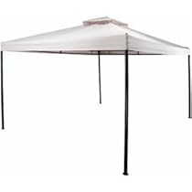 10' x 13'. Roof style gazebo with vented top. Steel poles. Tan polyester canopy. Mosquito net not included can be purchased separately.[]